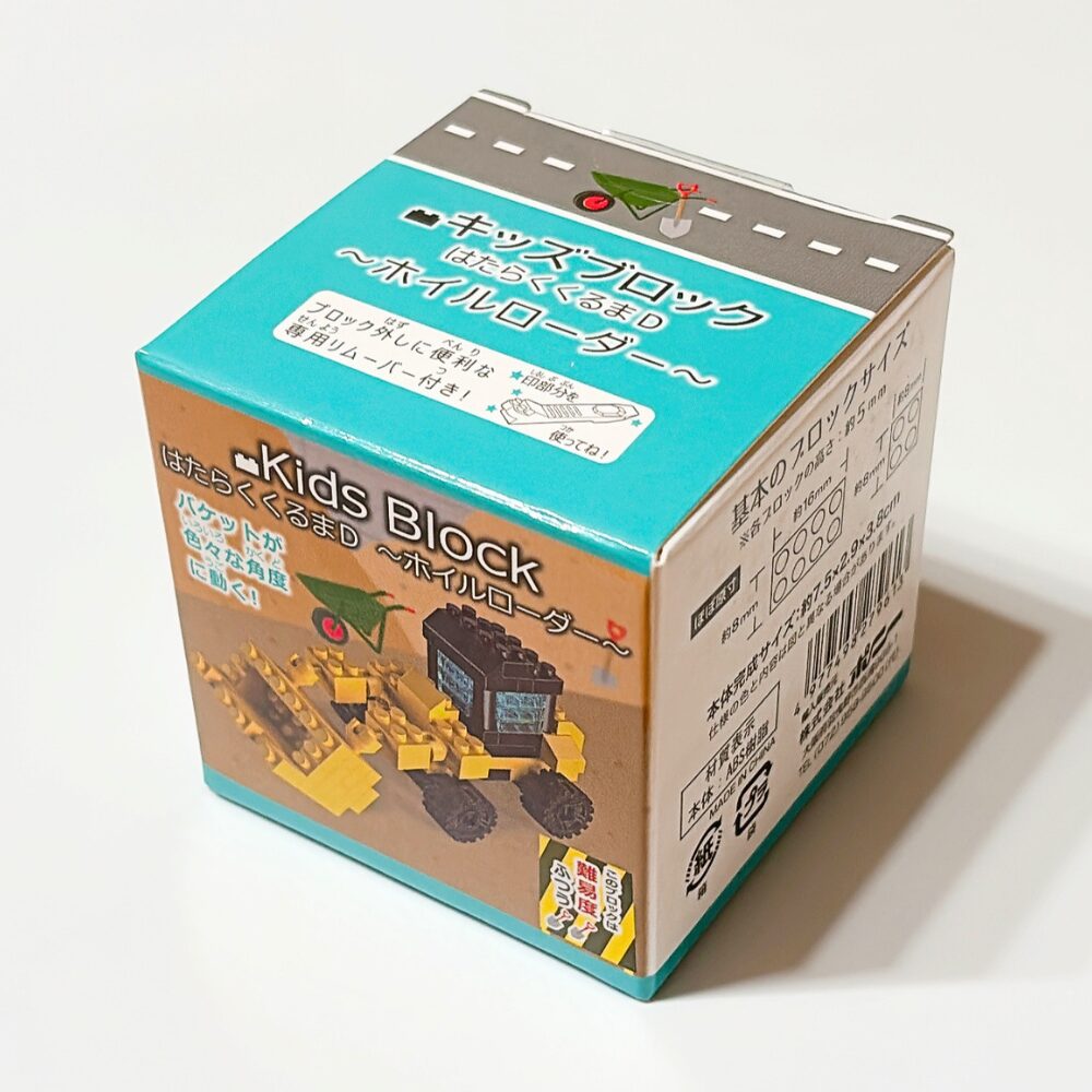 例えば、「キッズブロック(はたらくくるまD〜ホイルローダー〜)」の箱はきれいな立方体です。